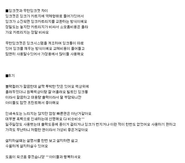 - 캐논 무한 잉크젯 복합기 G2910 : "가격 대비 성능이 뛰어나고, 설치가 쉬웠습니다."
