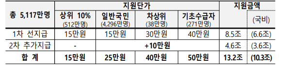 | 일반 국민 (90%) | 15만 원 | 10만 원 | 25만 원 |